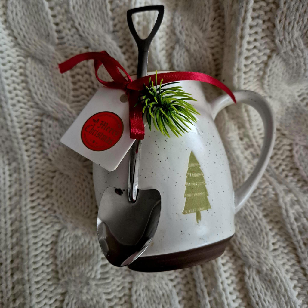 Ajándék férfiaknak. Nagyméretű, 11 cm magas bögre lapát alakú teáskanállal. Stílusos meglepetés lehet bárkinek, különösen férfiaknak.