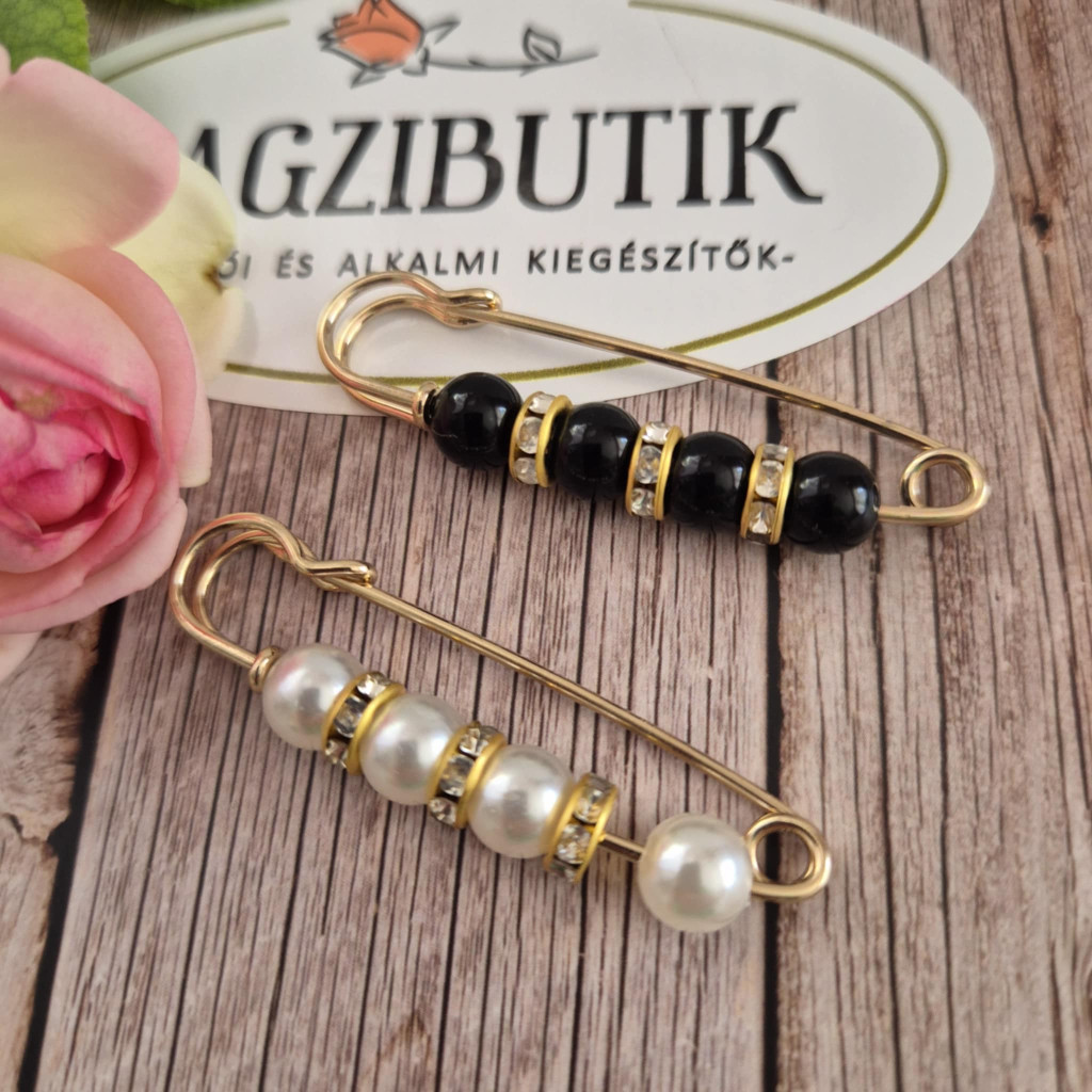 Gyöngyös-strasszos sáltű, kiegészítő. Dekoltázshoz, ruhabőség szabályozáshoz, sálra, sapkára, kalapra is tűzhető mutatós darab.