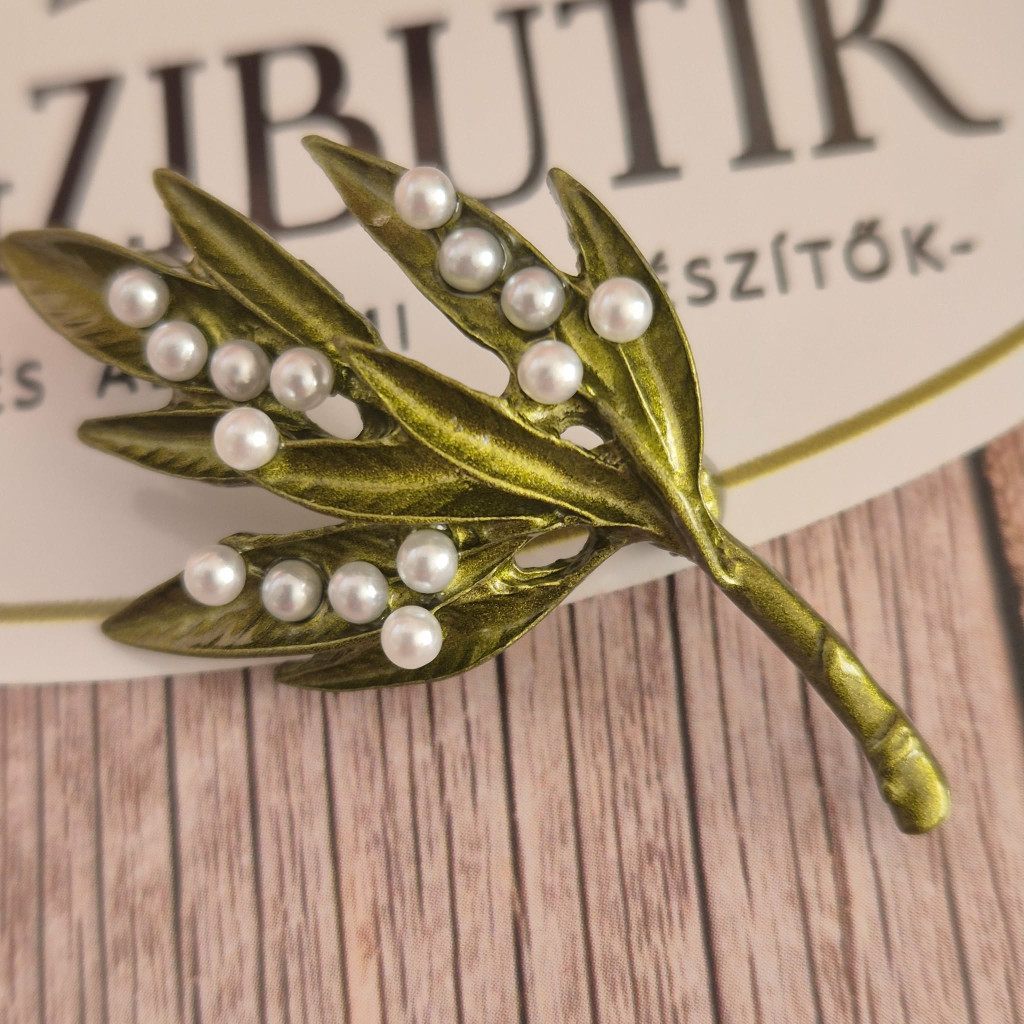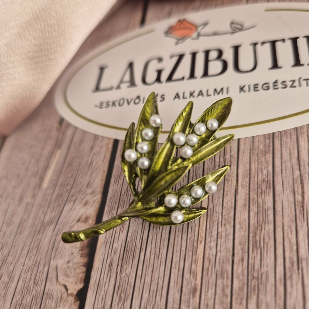 Romantikus stílusú gyöngyvirágcsokor bross, kitűző. Nagyon szép kidolgozású, elegáns kiegészítő.
