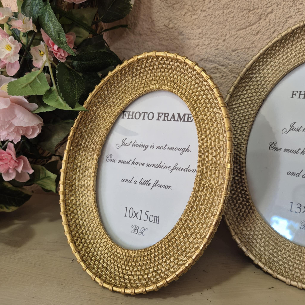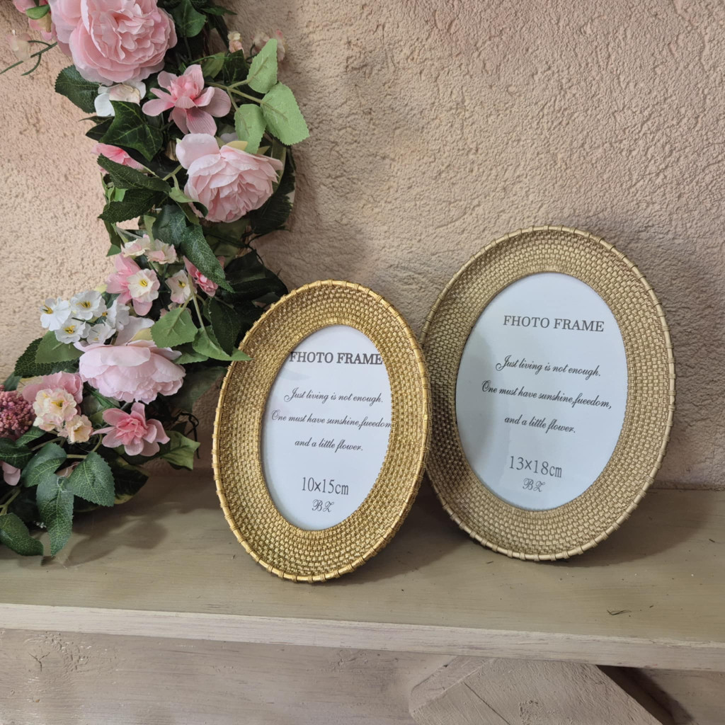 Ovális, arany fotókeret kétféle méretben.