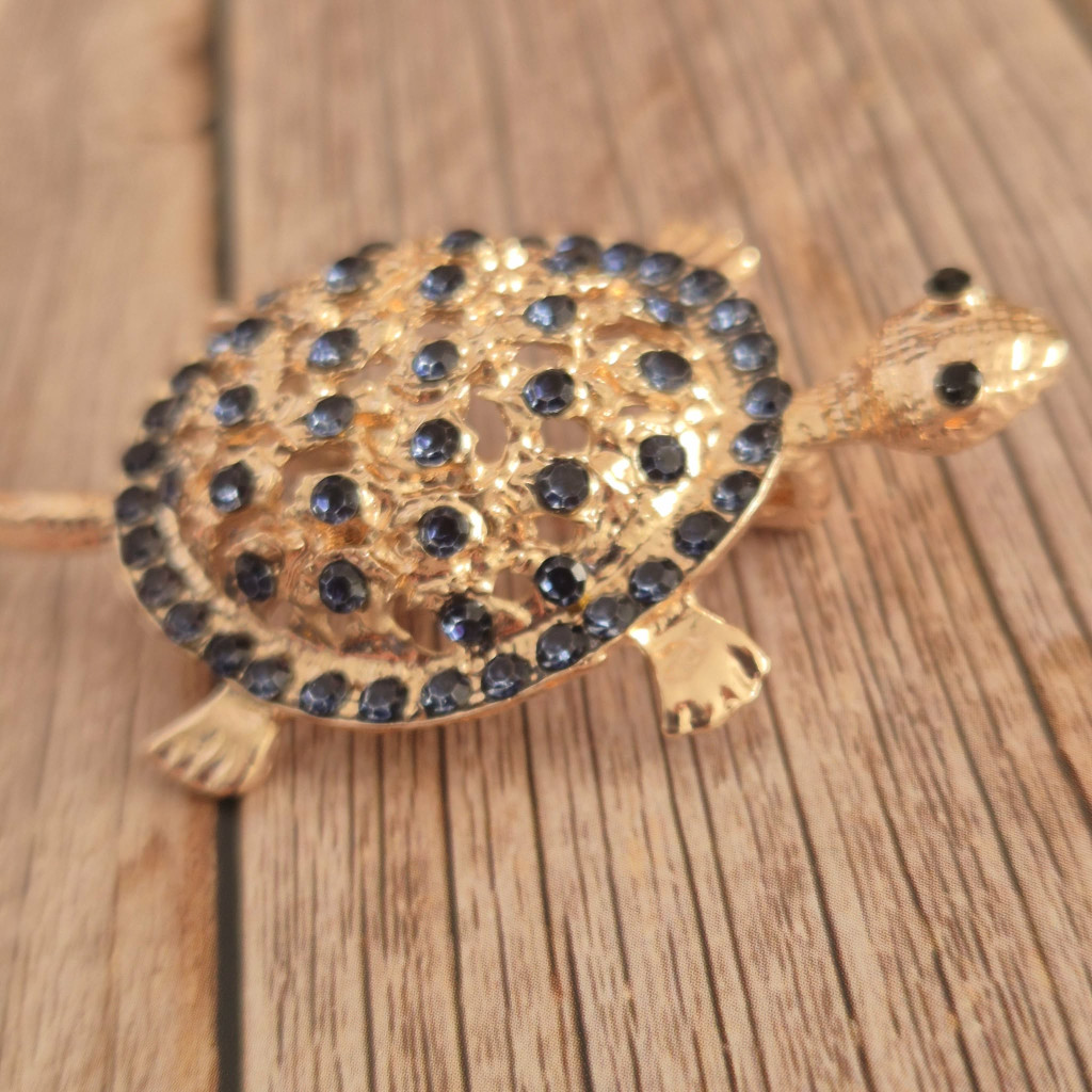 Teknősbéka kitűző arany színben.
