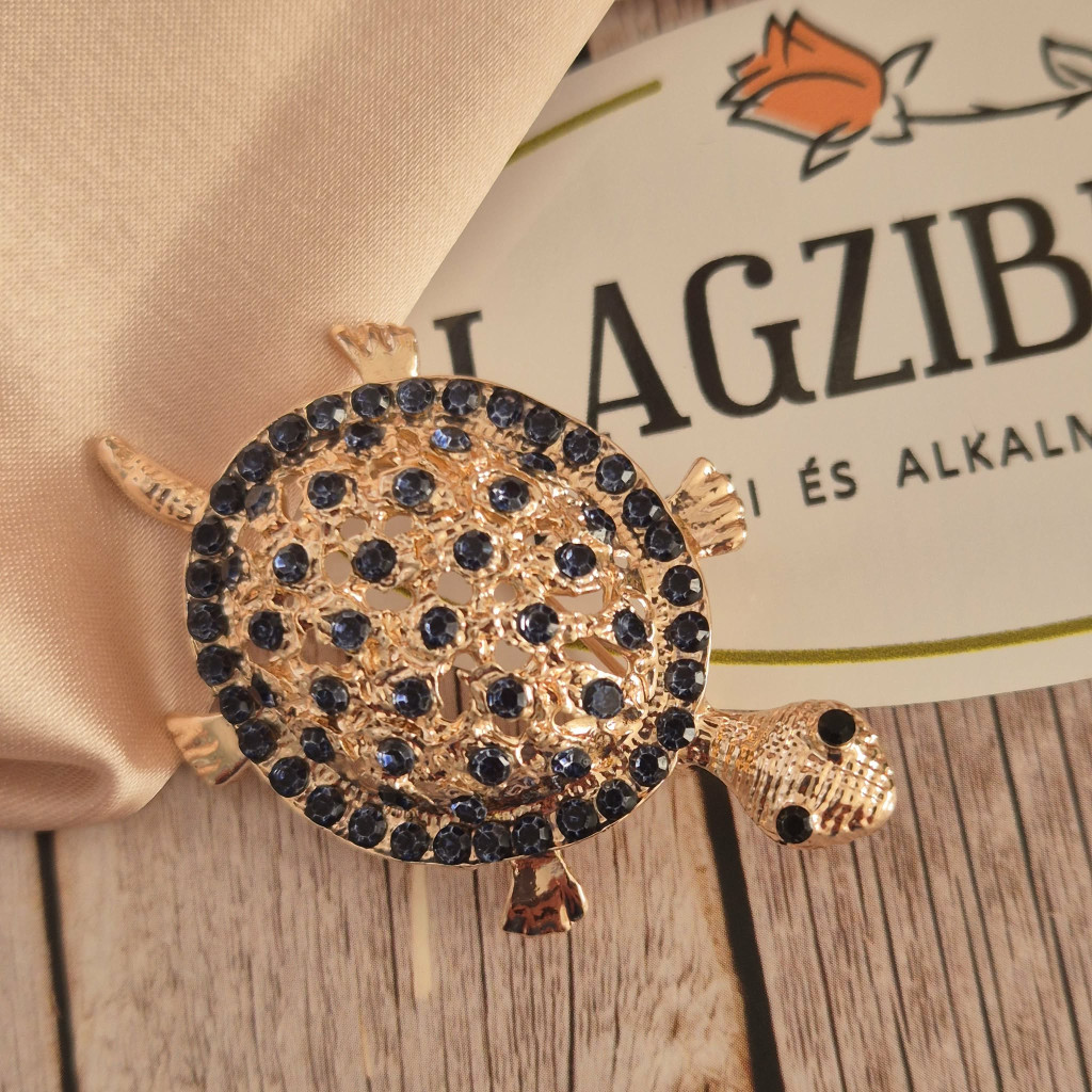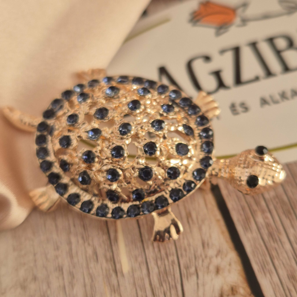 Kövekkel kirakott teknős kitűző arany színben.
